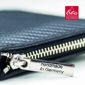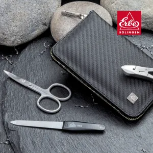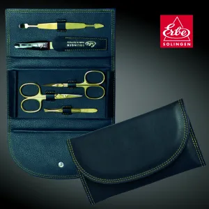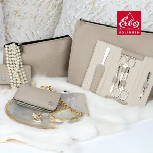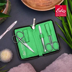 A long-lived, durable, two- to nine-piece stitched wraparound, folding, or pocket case, this keeps together, transports, and protects Solingen ERBE premium nailcare and cosmetics instruments.