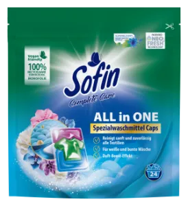 Sofin’s laundry detergents and fabric softeners, powered by the Complete Care formula, provide thorough care for colors and fabrics. They protect fibers, leaving fabrics soft, delicate, and vibrant.