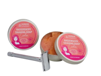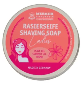 MERKUR shaving cream especially for female needs. Lathers on the skin even without a brush. With organic olive and coconut oil, this soap nourishes your skin as soon as it takes effect during shaving preparation. The razor and blade glide effortlessly over the skin and remove hair.