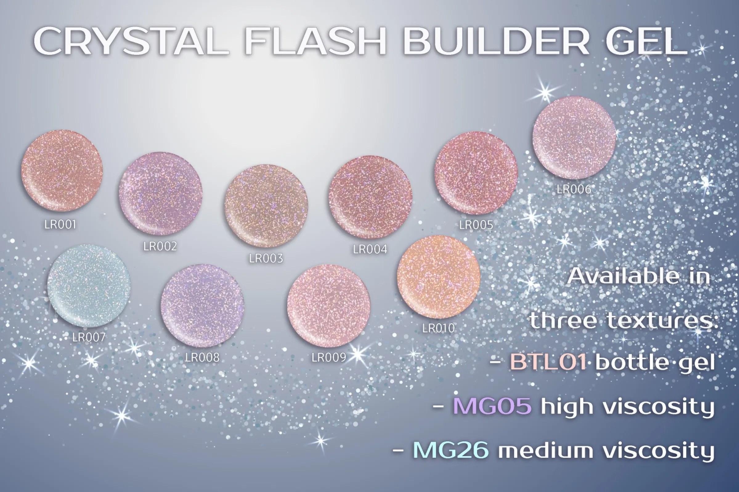 Builder Gel in tender milky colours with extraordinary glitter particles.