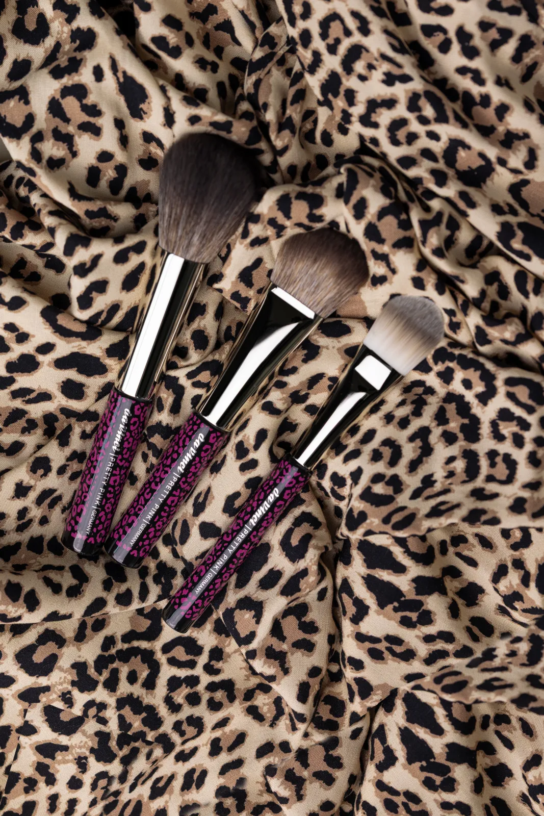 With the new, vegan PRETTY PINK collection, you’re adding an eye-catching trend product to your range – featuring three essential brush models: a flat foundation brush, a round powder brush and an angled blush brush. Produced in the renowned quality using exceptionally fine, skin-friendly synthetic fibres, paired with high-quality brass ferrules and sustainable wooden handles. The striking pink leopard print captures a current fashion trend. Thanks to its contrasting design, the series is perfect for promotional displays and attention-grabbing gift ideas – offering clear differentiation at the point of sale. To support the launch, a compact countertop display will be available, filled with three pieces of each model – ideal for spontaneous purchases and special promotions.